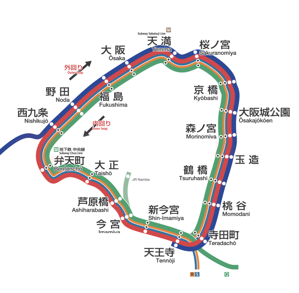 Vários destinos importantes estão na Osaka Loop Line, e 12 dessas estações também se conectam com outras linhas que atendem a área metropolitana de Osaka e fornecem conexões intermunicipais. Resumindo, esta é uma das principais linhas ferroviárias de Osaka e é extremamente útil, tanto para se deslocar dentro da cidade, como para se conectar com outras cidades. E é claro que sua utilização também está incluída no Japan Rail Pass.
